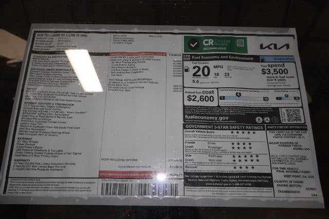 Ebony Black 2025 Kia Telluride 4D Sport Utility EX X-Line 3.8L V6 DOHC 18/23 City/Highway MPG 8-Speed Automatic AWD