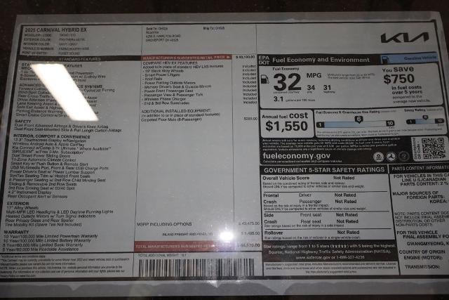 Panthera Metal 2026 Kia Carnival Hybrid 4D Passenger Van EX 1.6L I4 DGI Hybrid Turbocharged DOHC 16V LEV3-SULEV30 34/31 City/Highway MPG 6-Speed Automatic FWD