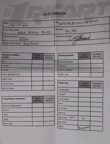 The 2020 Nissan Kicks S CVT delivers smart efficiency and compact versatility, finished in Gun Metallic with a Charcoal interior for a clean, modern look. Powered by a 1.6L DOHC 16-Valve 4-Cylinder engine paired with an Xtronic CVT®, it offers smooth performance and impressive fuel economy for everyday driving. Inside, you’ll find a 7" touchscreen display with Bluetooth® connectivity, Siri® Eyes Free, and a rearview monitor for added convenience and confidence. With Nissan Safety Shield® 360 features including Automatic Emergency Braking and Lane Departure Warning, this Kicks S is built to keep you connected and protected on the road. Available now at Ricart Automotive Used Car Factory.
