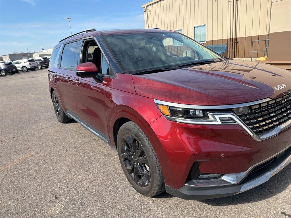 This 2024 Kia Carnival SX Prestige delivers premium comfort and advanced technology in a versatile family-focused design, finished in Flare Red with a Gray interior. Powered by a 3.5L Gas Direct Injection V6 engine paired with an 8-speed automatic transmission, it provides smooth performance and confident driving capability. Inside, it features a dual panoramic display with navigation, Bose premium audio, heated and ventilated front seats, second-row power seats, and a dual power tilting and sliding sunroof for an upscale cabin experience. Equipped with advanced safety technology including forward collision avoidance assist, blind-spot view monitor, surround view monitor, and smart cruise control with stop and go, this Carnival SX Prestige is built for comfort, innovation, and everyday convenience. Available now at Ricart Automotive Used Car Factory.
